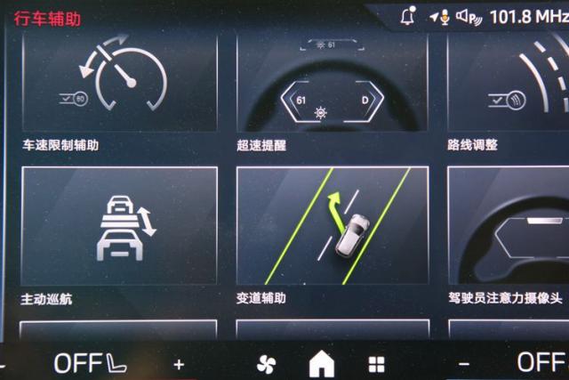 在驾驶辅助方面,其功能主要包括车道维护、交通标志识别、并联辅助、车道偏离警告、主动刹车、开门警告、前方碰撞警告、后方碰撞警告、倒车侧警告。
