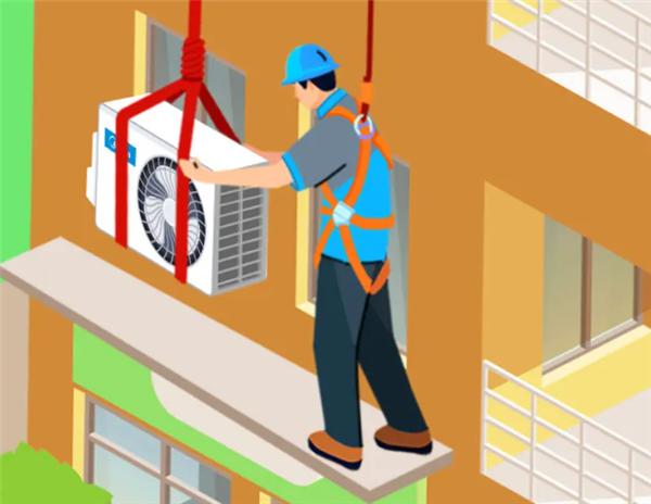 室外空调机的安装通常需要在建筑物的外墙上进行高空作业,安装人员需要在阳台、窗户或没有防护栏杆的特殊装置上进行操作,工作环境具有很高的风险。