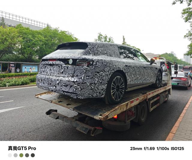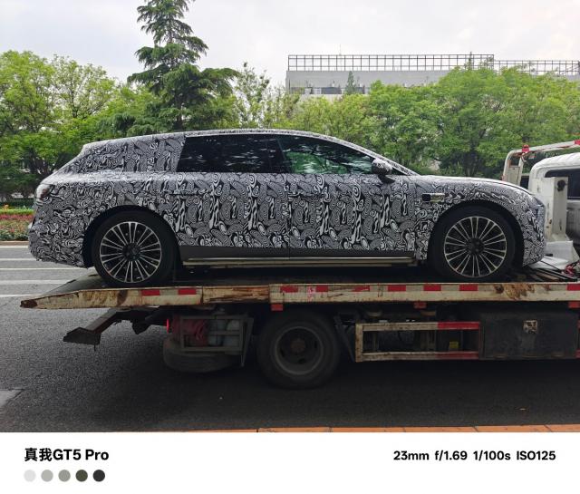 IT 世家 5 月 8 日消息,小红书博主 SAHADEV 两个享界今晚发布 S9 旅行车伪装谍照。图为实车具有旅行车、猎装车等“独特”的纤细姿态,配有流线型车顶,整车线条圆润,享受世界。 S9(轿车版)风格相似。
