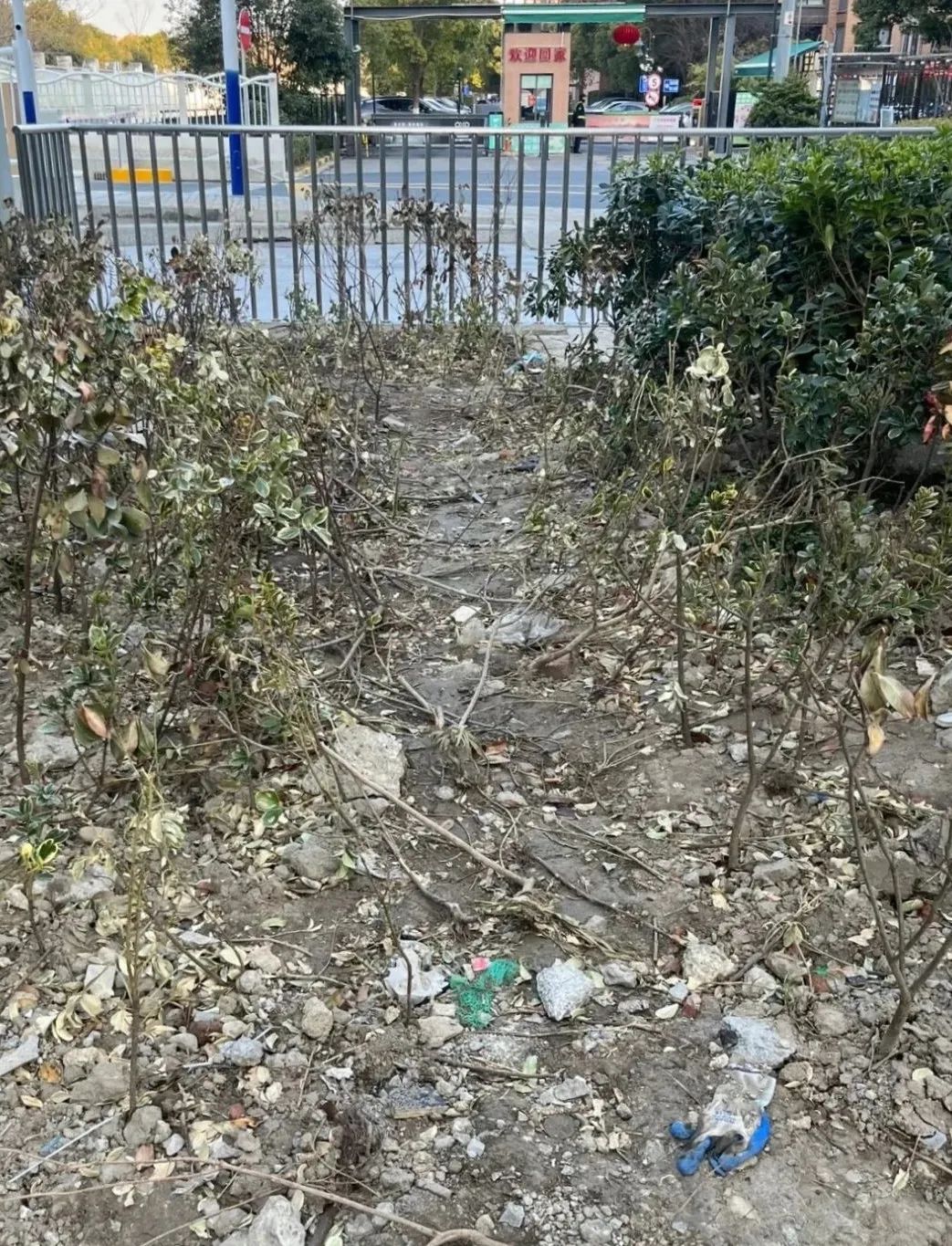 中春路站9A扶手电梯旁的机场联络线正对万科城花新园小区南门。机场联络线开通后,由于管理需要,七宝国际物业在这一地区种植绿化并关闭。然而,为了节省绕道时间,许多居民选择“抄近道”翻越绿化带,造成植被斑秃、土壤外露,安全隐患与治理分歧交织在一起。他说:“以前要不绕道要不翻绿化带,只能在多走和难走之间选一个,老人小孩真不方便。”小区居民李阿姨回忆道。