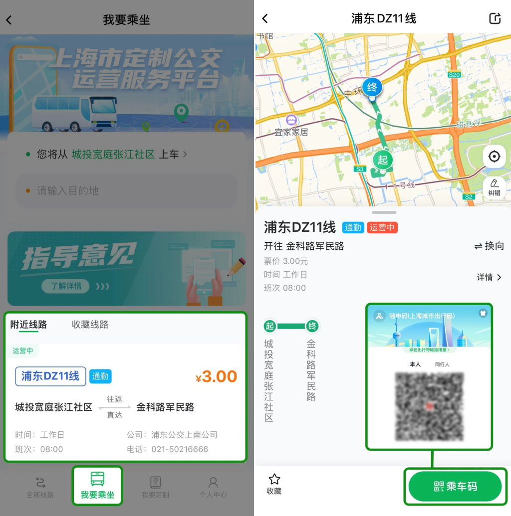 以浦东DZ11线为例。点击查看线路详情页,可以查看所有停车站和线路地图。上车时可以直接点击乘车码,使用“随申码”乘坐定制公交车。您也可以根据距离、线路类型、操作状态等多维个性在“所有线路”页面上选择线路。如果您需要乘坐必须提前预约的线路,系统支持自动跳转到相关页面。