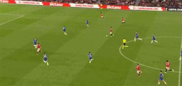 第 85 几分钟后,阿马德右路套边下底传中,足球击中毕尔巴鄂后卫的脚底映射,霍伊伦德在门口打进空门,曼联 3-1 毕尔巴鄂。