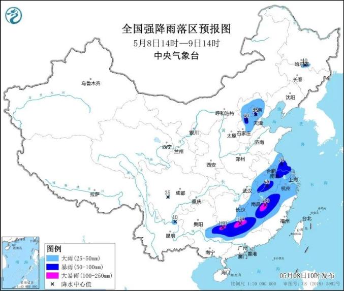 据中央气象台估计,今明两天(5月8日至9日),南方和北方将出现明显的降水。今天,南方地区进入降水最强时期,大到暴雨区域广,局部强度强。降水期间,要警惕强对流天气,其中南方强对流天气影响广泛,而华北地区以分散的强对流天气为主。