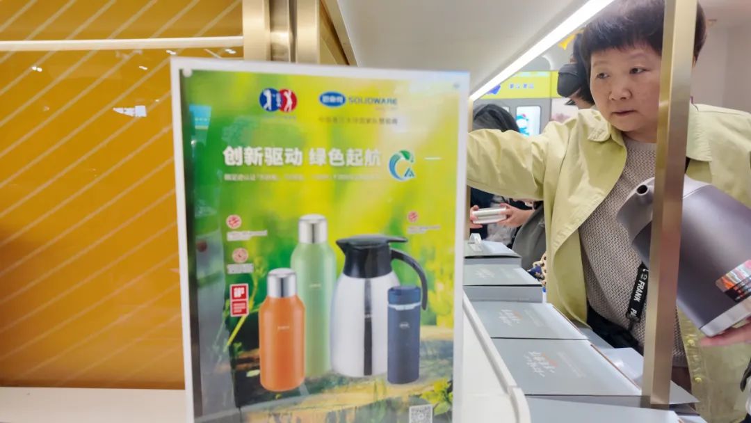 走进南京路步行街的一家食品店,一家销售思乐得不锈钢保温容器产品的柜台被顾客包围了三层和三层,非常热闹。这是五一假期前夕,商场打造的一个全新的“出口内销”柜台。品牌工作人员热情地向客户介绍产品,产品亮点、活动优惠等问题成为大家关注的焦点。