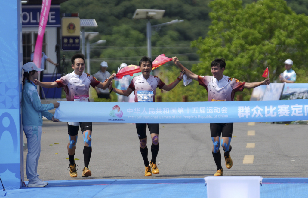 第十五届全国运动会群众赛事定向接力赛决赛于8日在广东省茂名市高州根子镇举行。广东队以1小时43分19秒夺得男子定向接力赛冠军,获得第十五届全国运动会群众赛首金。
