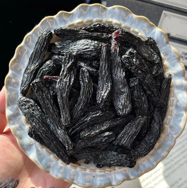 全黑或一点红头就是好货,红头越多越便宜,也会影响口感。