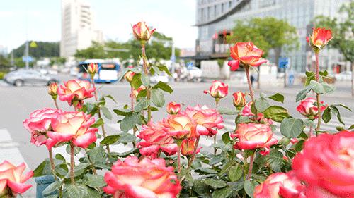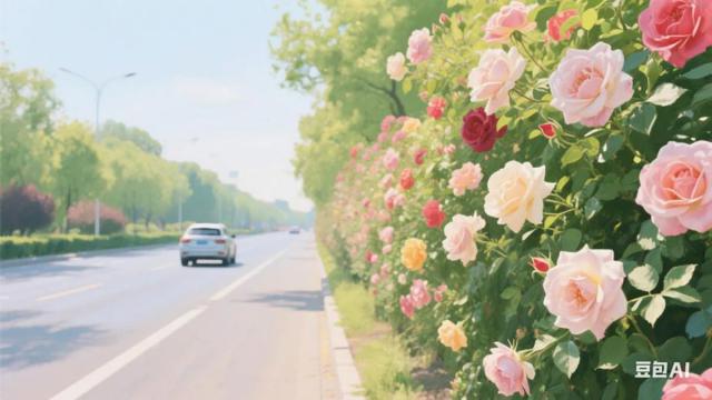 车辆飞驰而过,窗外的玫瑰就像一个流动的彩色音符,弹奏着属于自己的 5 月份乐章。