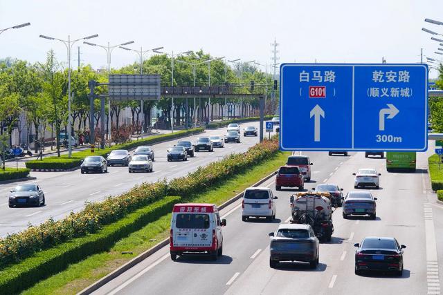 过去的车辆从花坛上驶来,仿佛进入了童话世界。大众纷纷称赞,“通勤路变成了观景长廊,真美。”