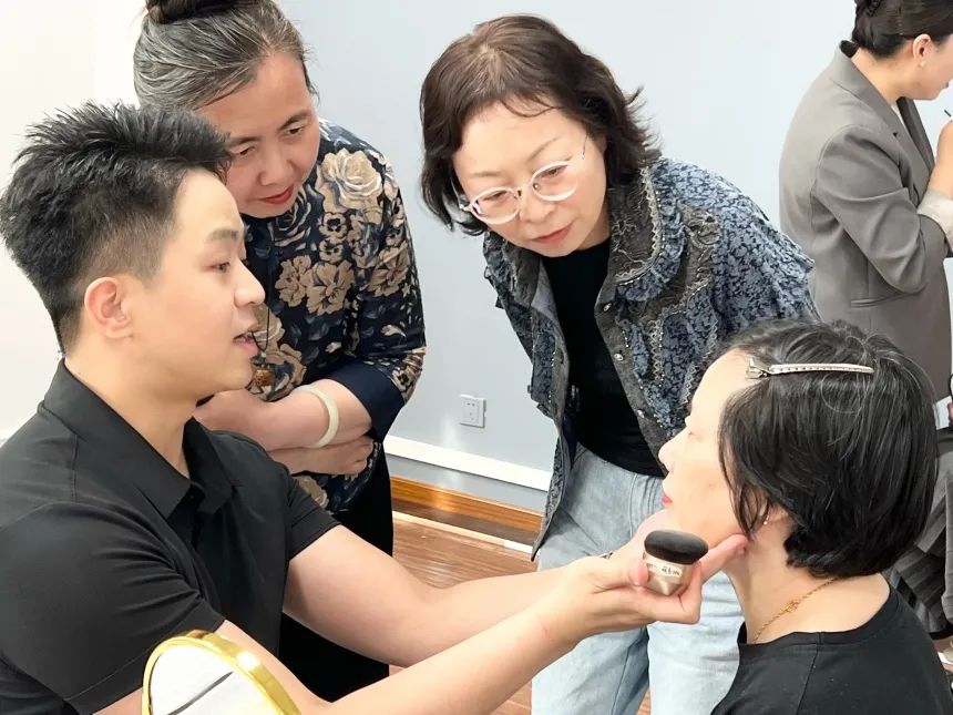 欧莱雅集团的化妆师用简单的方式向学生传授护肤和美容的专业知识。起初,学生们看起来有点僵硬,但后来,他们沉浸在这种轻松愉快的氛围中,仿佛他们找到了年轻时的活力和自信。