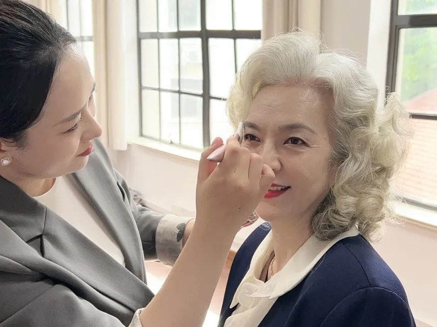 学生要么是母亲,要么是奶奶,但此时此刻,他们忘记了时间的痕迹,再次看着镜子里的自己。粉底、眼线、唇彩在他们的脸上勾勒出动人的画面。他们不仅为了别人的眼睛而打扮,也为了自己内心的坚韧和力量。