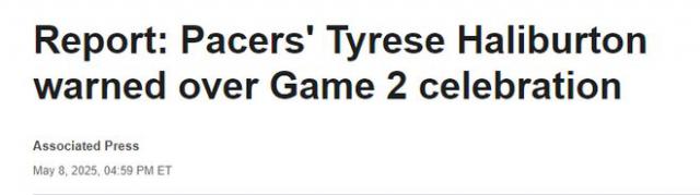 北京时间 5 月 9 日本,据美联社报道,哈利伯顿的确是步行者球星。 G2 在完成三分准绝杀后,他跳过了“大蛋舞”,但是他逃脱了,只被联盟警告,没有被罚款。