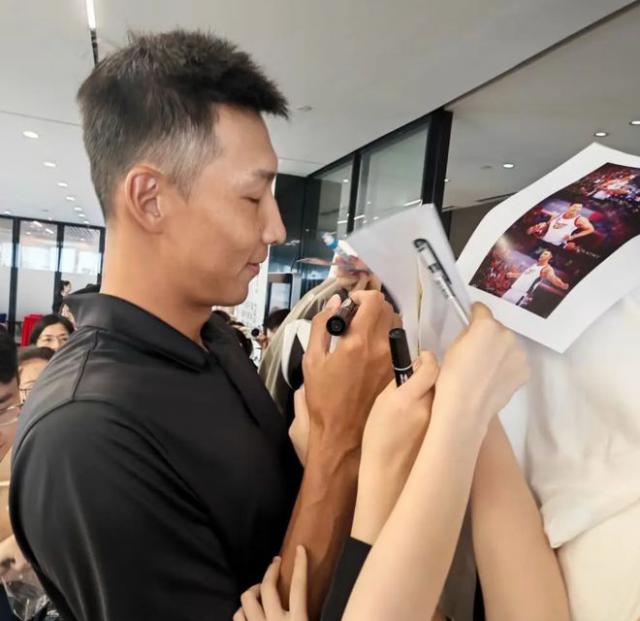 而且阿联还在给现场的人签字,甚至有人特意印了阿联在广东男篮的照片。这时,我们也可以看到阿联心情很好。毕竟他已经很久没有出现在活动中了。面对这么多人,他难免会有点激动。