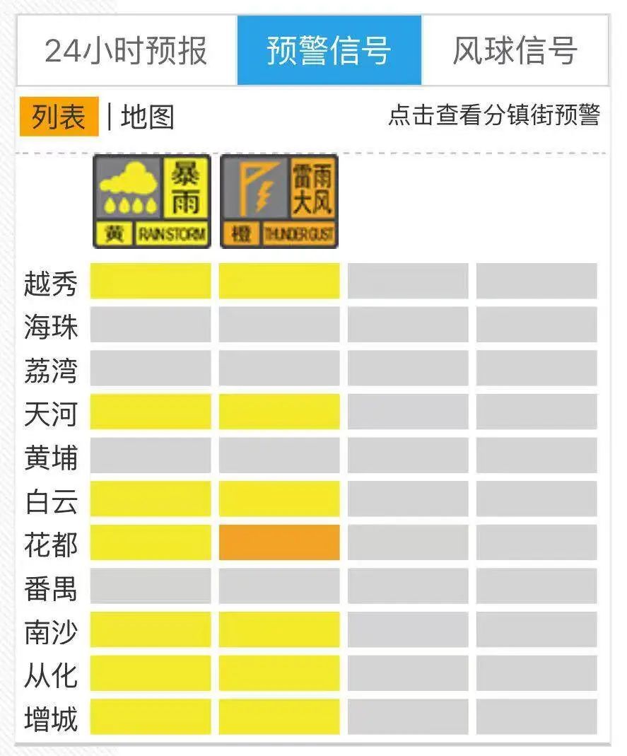 截至6时53分,广州预警发布情况