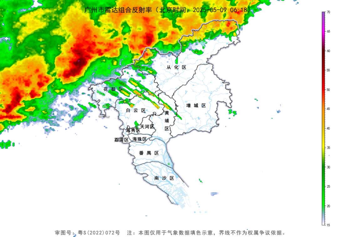 9日中午,广州从北向南转雨。