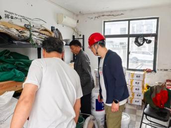 要求新建修复工程停止施工,重点检查脚手架和施工界面、屋面临时防雨和应急物资储备。同时,要求项目应急救援队伍进入待命状态,与小区物业公司保持联系,确保第一时间响应和消除危险。