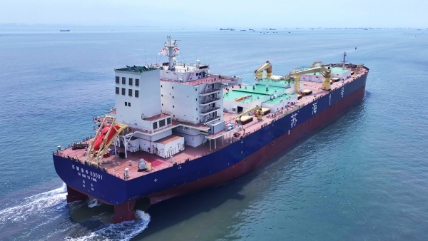 世界上第一艘三文鱼养殖船“苏海1号”扬帆试航