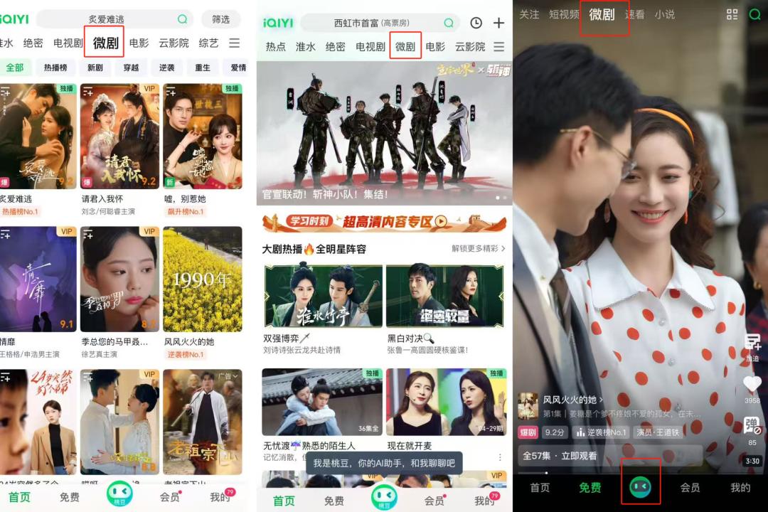 始终尊重创新精神 爱奇艺自然首当其冲,APP首页设有两个短剧入口,一个是频道条中的短剧入口,另一个是新增的“桃豆”入口。点击后可欣赏自制独播短剧,还有合作分帐作品,目前爱奇艺微短剧已经在长视频平台上处于领先地位。
