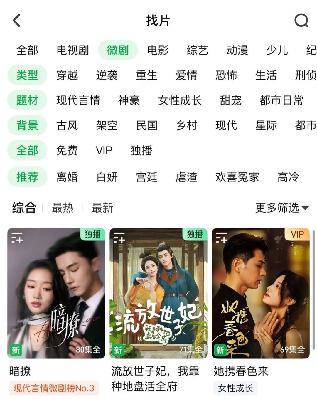 此前,爱奇艺发布的2024Q4财务报告显示,目前已经上线的微剧数量已经达到了短剧行业头部平台的规模。。今年年初,爱奇艺宣布推出“千部精品微剧计划”,与优秀的编剧、导演、制作团队携手,与行业上游合作伙伴共同开发多元化的微短剧内容。爱奇艺速度版APP中的微剧现在是仅次于电视频道的第二大频道。