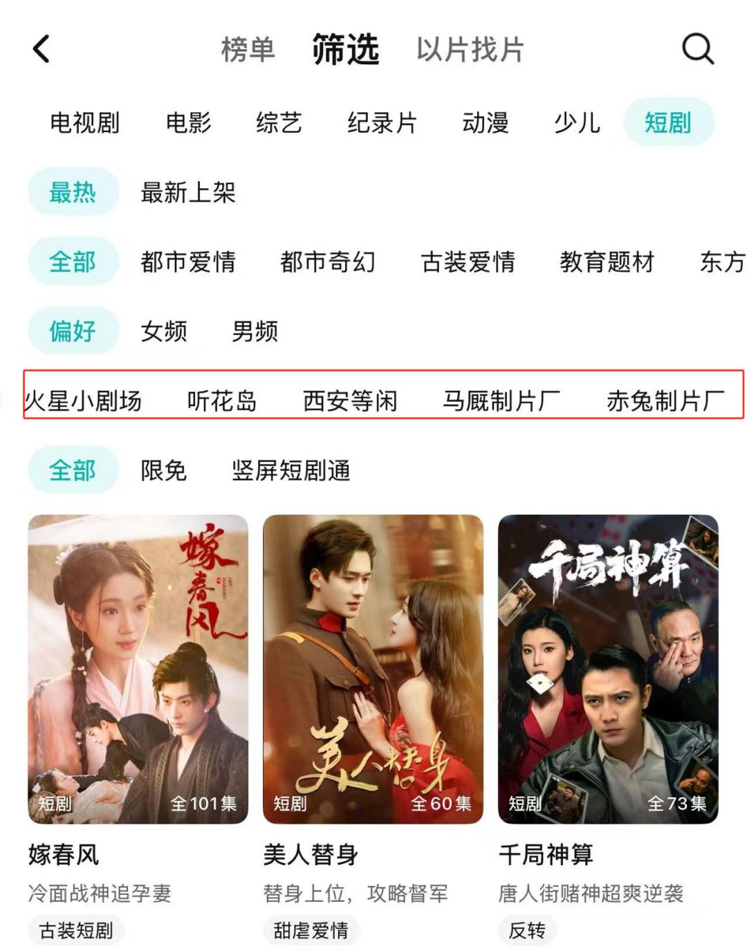 不管是横屏还是竖屏短剧,腾讯视频都知道如何充分发挥自己在IP资源方面的优势,打造更高质量的竖屏短剧。目前在腾讯的视频中,我们可以看到短剧分为五个品牌:火星剧场、听花岛、西安等休闲剧”、“马厩制片长”和“赤兔制片长”。。现在所有的独播内容都处于“限制”状态,这种向用户释放善意的态度,为腾讯视频加分不少。