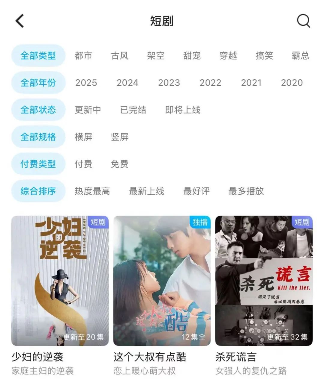 值得注意的是,优爱腾对短剧业务的加码正在进入一个新的抢位阶段。除了作品数量的不断增加,长视频平台显然不再坚持横屏短剧,而是大力投入真正的坚屏短剧。