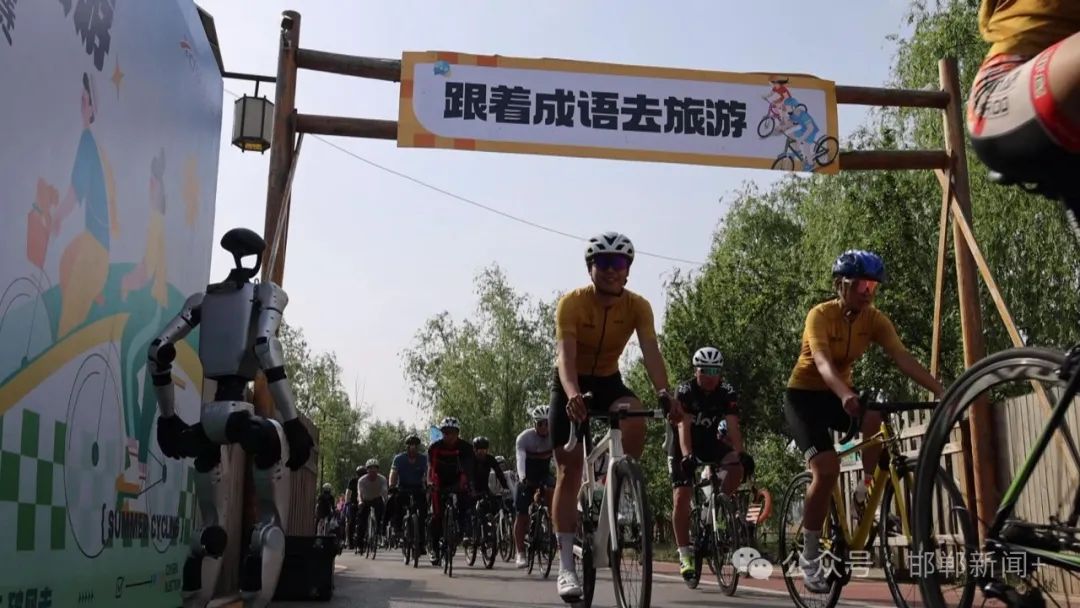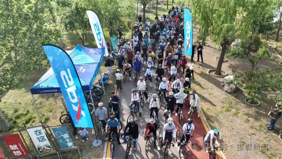 「‘邯’情脉脉 ‘郸’等着你——2025年复兴区自行车趣味骑行比赛‘跟着成语旅行’。200多名骑自行车的人聚集在复兴区,一起参加这场文化与体育融合的盛宴。