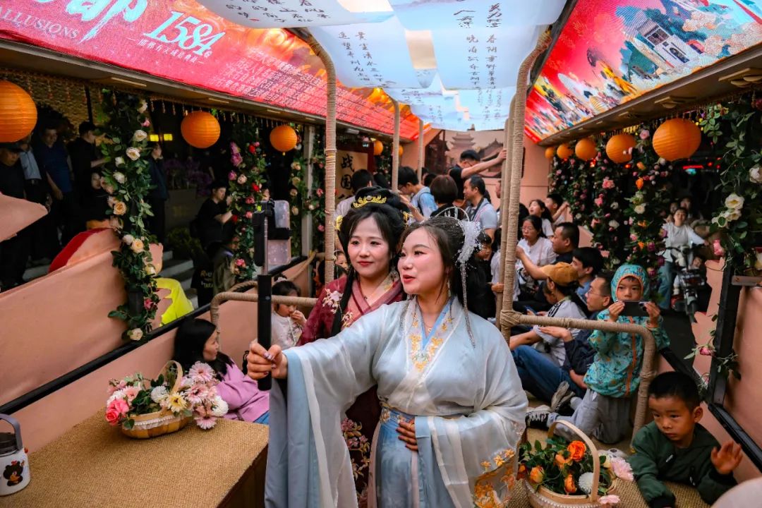 来自太原的游客李淑媛穿着租借的东汉曲深衣,在社交媒体上发布了一段体验视频:“穿上东汉袍,然后坐在花车上,你似乎真的变成了赵国公主!”