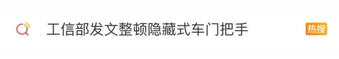 8日,工信部科技司公开征集《汽车车门把手安全技术要求》强制国家标准制修订计划的建议,并发布相关文件。相关话题 #工信部发文整顿隐藏式门把手# 冲上热搜。
