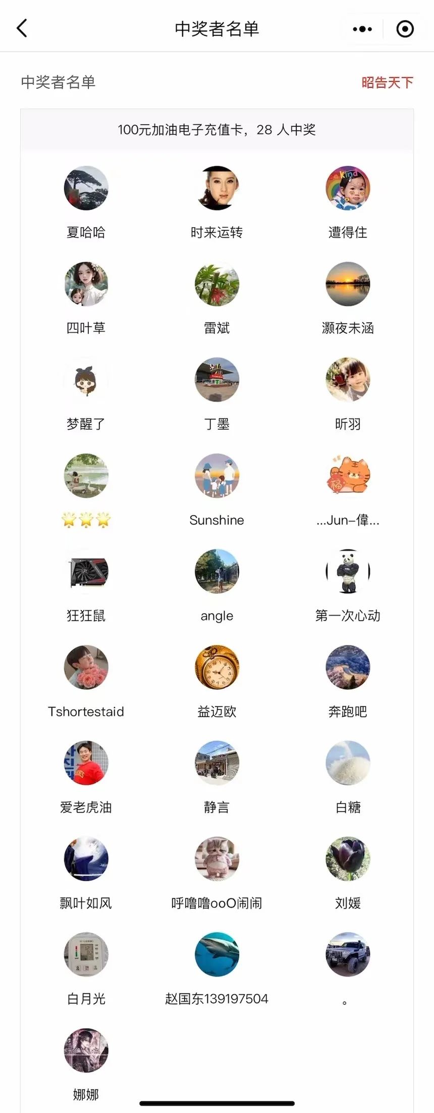 每个人得到一张100元的加油卡!