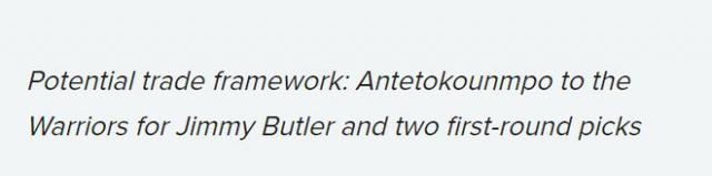 潜在交易框架:字母哥加盟勇士,换来巴特勒和两个首轮签约。