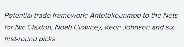 潜在的交易框架:字母哥加入篮网,换来克拉克斯顿,克洛尼,基翁。 - 约翰逊以及 6 个首轮签
