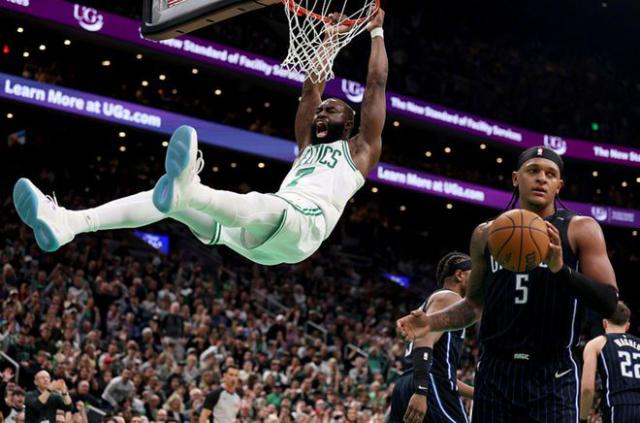 波神的出场时间有限,霍福德经常被拖出来,凯尔特人的阵容只能牺牲塔图姆,所以塔图姆第二轮平均场均。 15 个篮板球。但同时也解放了杰伦布朗。与当时快船小卡和乔治的搭配相似,乔治生活在小卡这棵大树下,得到了一些庇护。但两场比赛总共三分球。 17 中 3,送出 6 同时还有次助攻 8 第二个错误,而杰伦布朗是领队打衔接段,这种效率和数据,的确有点太低了。回到上个赛季的总决赛,杰伦布朗 MVP,但是总决赛场均 20.8 分 5.4 篮板 5 助攻,两个项目的准确率低至 44% 23.5%,用 ESPN 换句话说,不是杰伦布朗有多优秀,而是找不到更好的人选。