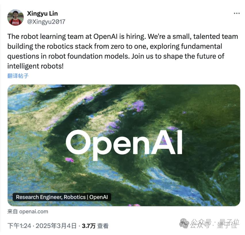 更加具体地说,今年三月,OpenAI将扩大一个基本的机器人模型团队,工资可以达到最高年薪385万。