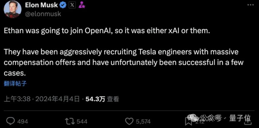 因为特斯拉视觉科学家Ethan当时的原因 Knight辞职加入了马斯克的xAI公司。结果,这个过程非常坎坷,因为他几乎不得不去OpenAI,但他被马斯克扭转了:
