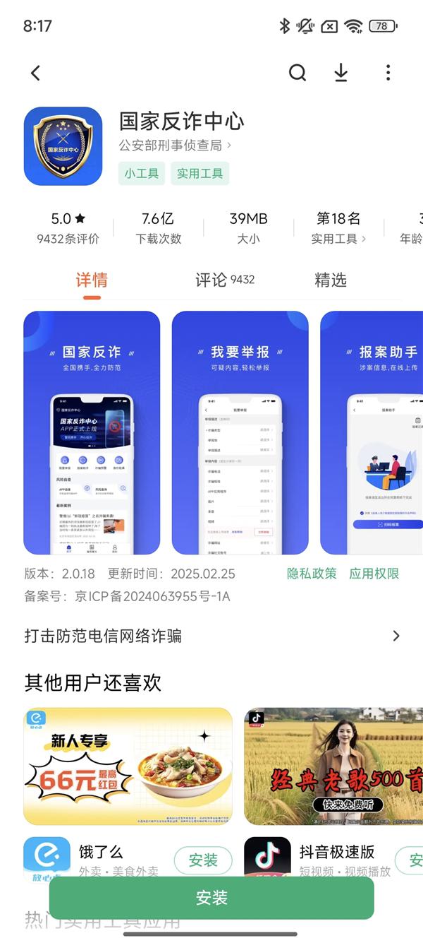 据悉,国家反诈骗中心是一款官方手机防骗保护软件,主要包括以下功能: