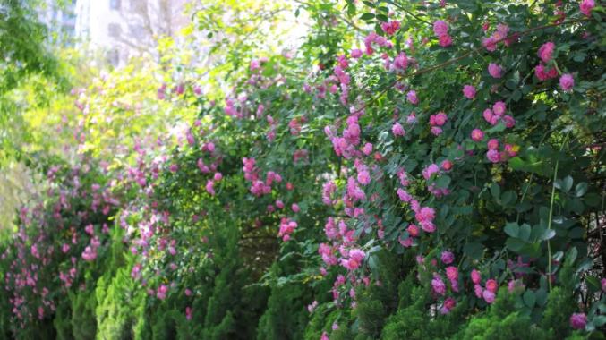 星星点点的玫瑰,就像粉红色的精灵,热情地拥抱着初夏的到来。