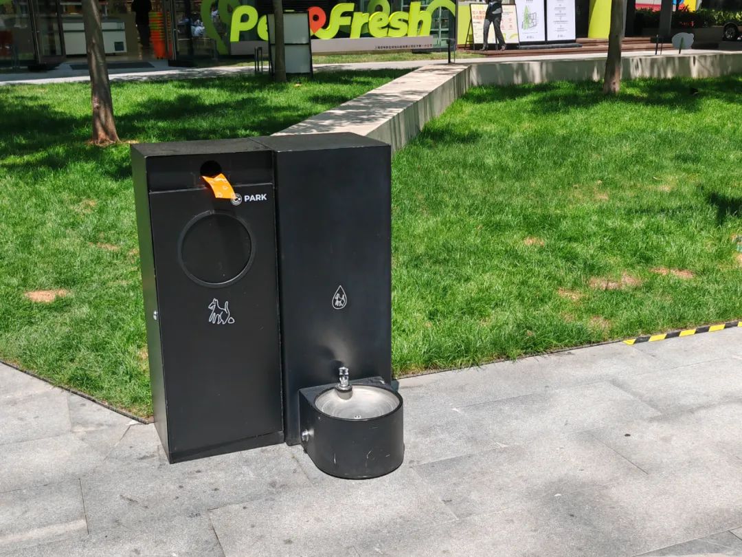 派特鲜生在长宁区海粟文化广场设立了第一家店。这里的很多细节都强调“宠物友好”:路边有一个便袋和饮水台,地下一层聚集了宠物摄影、宠物寄养、宠物百货等业态。即使在工作日下午,一些居民也带着他们的宠物狗来这里散步。