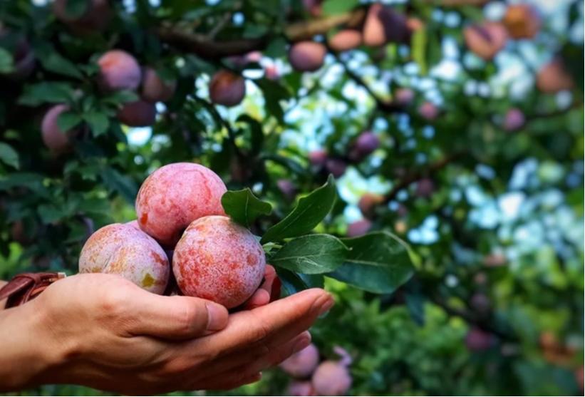 【芙蓉李:紫红透亮,脆甜带酸,生津开胃,是骑车时最好的零食。]