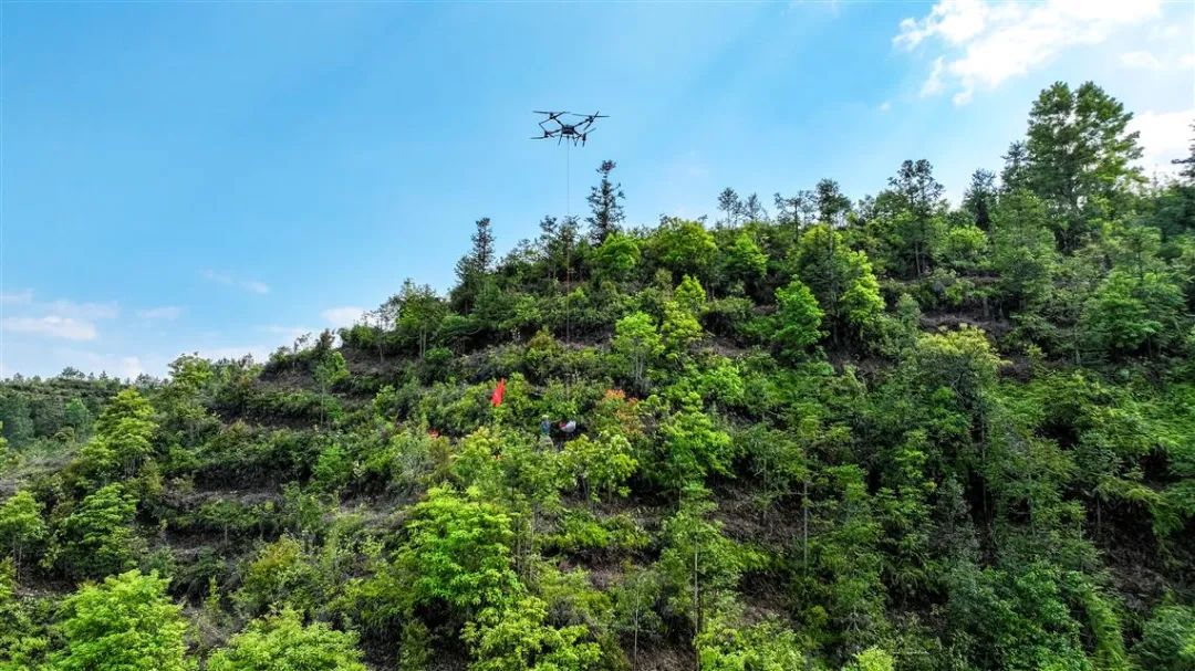 县资产监督管理局绿化林业发展科科长傅俊杰说:“每架无人机的运输量通常需要来回三四次才能完成。此外,无人机可以有效减少运输过程中苗木的冲击,从而显著提高造林成活率。”