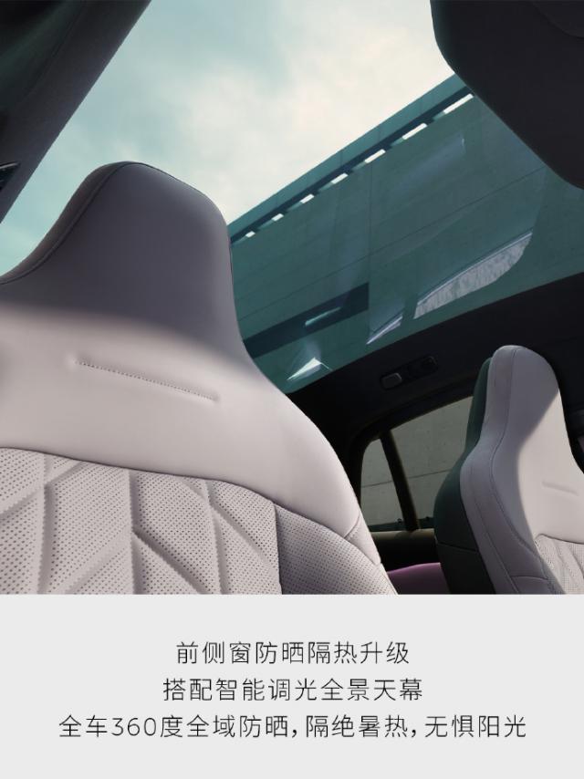 前窗防晒隔热升级,组合智能调光全景天幕,整车 360 度全域防晒