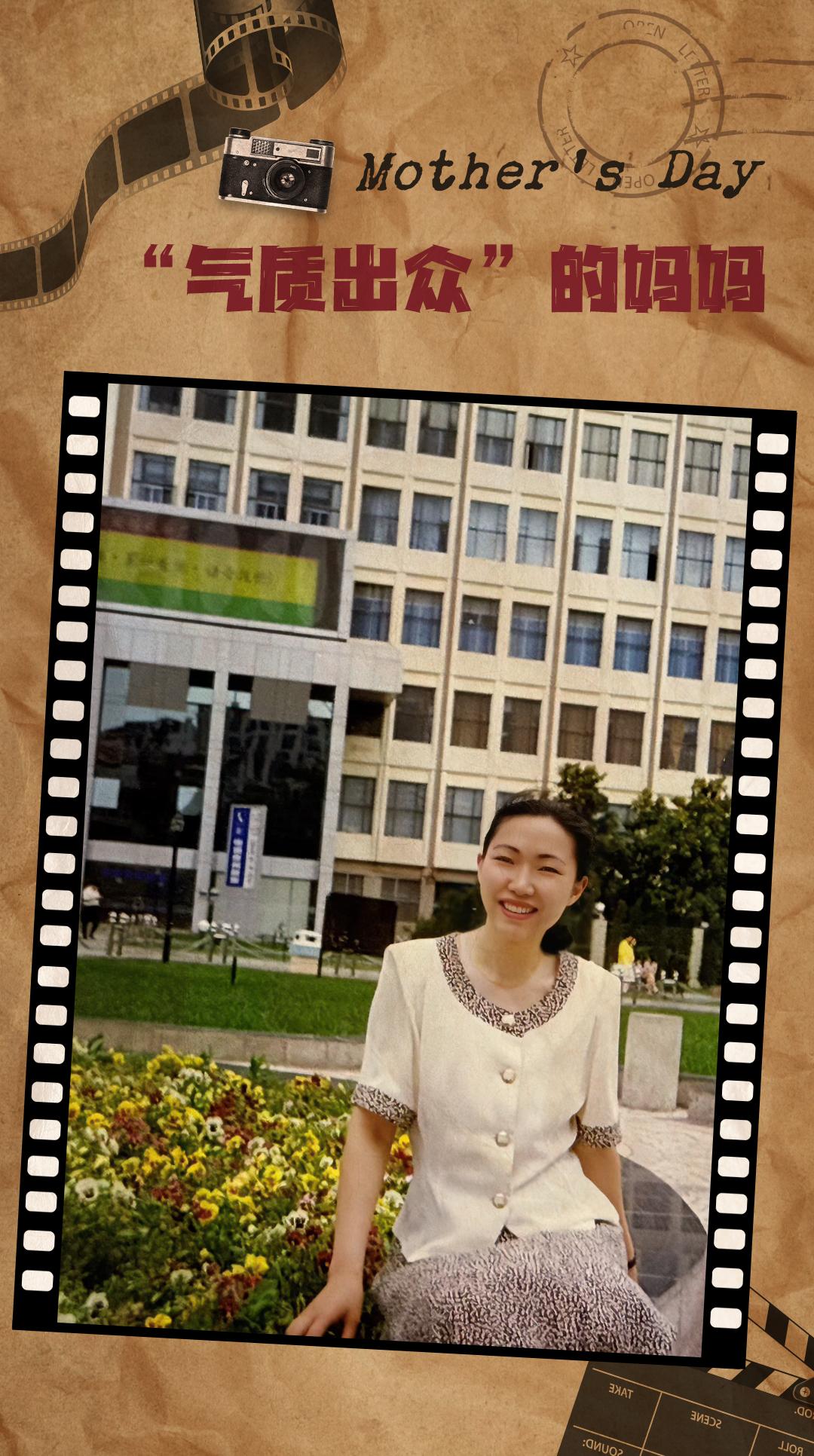精致的西装,衣着好的妈妈甜美温柔。1996年,南京鼓楼广场刚刚扩建,妈妈就去打卡了!当时人很多,父亲找到了合适的位置,给母亲拍了这张充满青春回忆的照片。