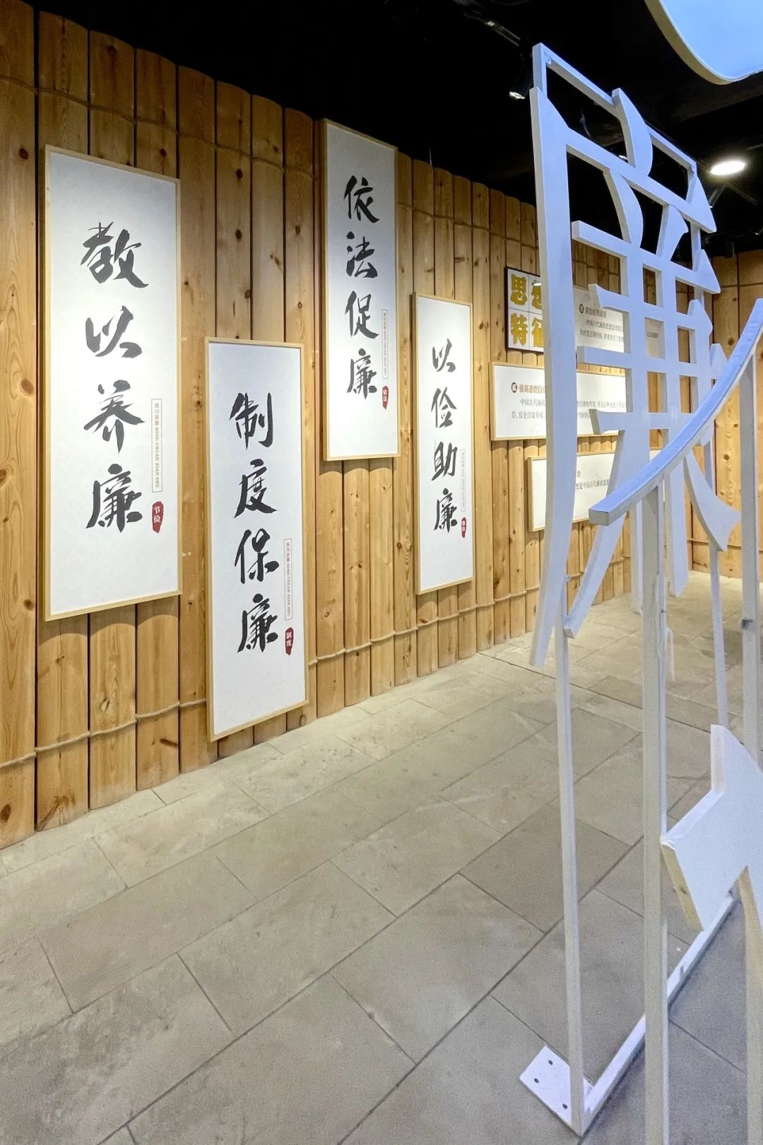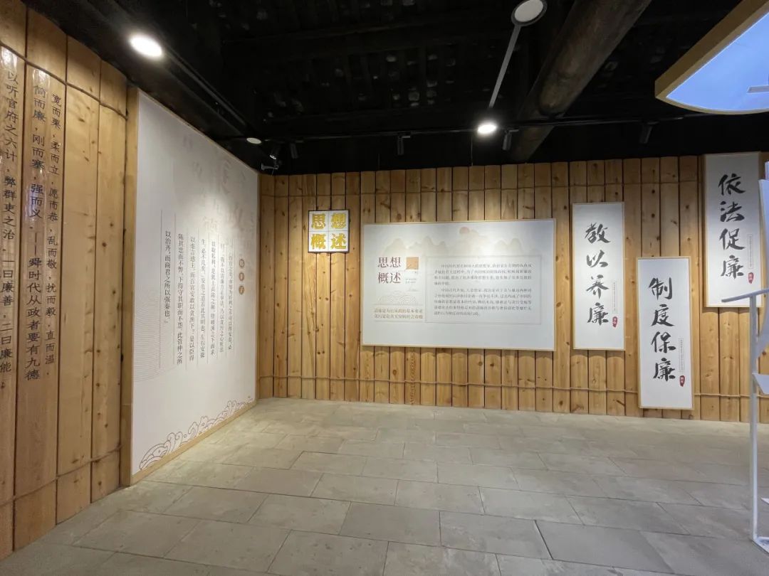 照片中,在基层廉洁文化展厅,展板展示了廉洁思想。从“教以养廉”到“保廉制度”,传达廉洁理念。这是廉洁文化深入基层的体现,旨在引导基层干警筑牢廉洁自律的防线,用文化渗透人心,让反腐倡廉在基层根深蒂固。