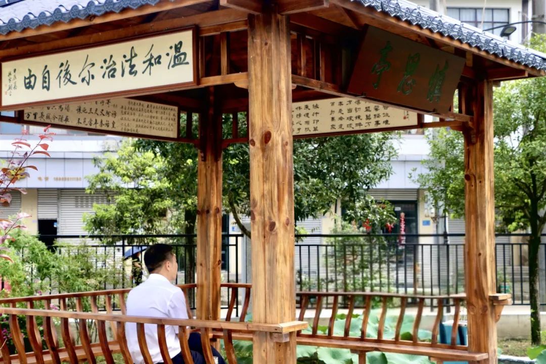 图中,“慎思亭”古朴屹立,亭上“柔和法治后自由”等字样蕴含着深刻的含义,提醒人们思考和反思。这个亭子可以作为法官进入法院前的廉洁反思场所,警察在工作和生活中要谨慎思考,规范言行,坚持廉洁自律的原则。面对复杂的案件,他们也要谨慎行事,公平司法,找到法律上的温暖。