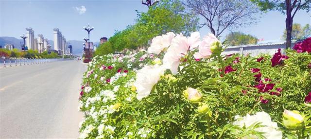 长夏时分,榆中县兴隆山大道两侧各种牡丹花竞相开放,白色、粉色、紫色的花瓣娇艳;和平天香山、范家营、牡丹园、高崖湖滩、马坡上庄、城关大坡坪、马衔山麓 …… 从每年的高山河榆中, 4 月底到 8 月亮,随着阶梯状地形的变化,由北向南,延长了牡丹花的欣赏期,更使当地群众脱贫致富,笑容满面。