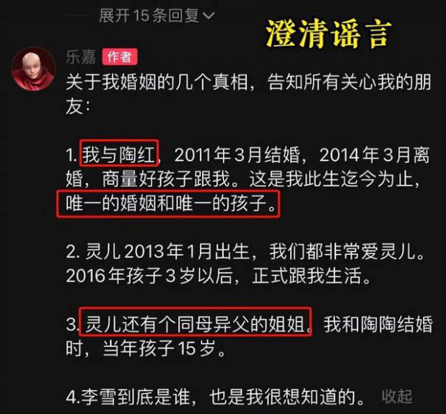 后来才知道,学校里的同学讽刺乐嘉是三婚三离的“渣男”。