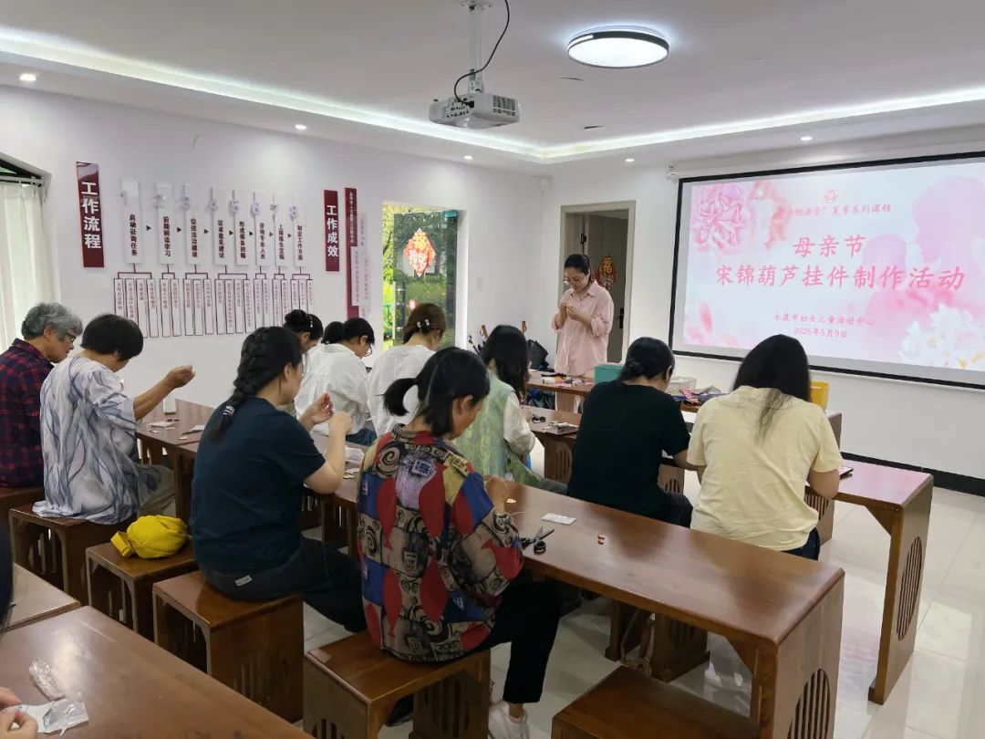 值此母亲节之际,5月9日上午,永康市妇女活动中心开展了“妇女课堂”夏季系列课程之父亲节宋锦葫芦吊坠制作活动,吸引了众多女性参与,共同感受传统非物质文化的魅力,为父亲节增添了不一样的温暖。