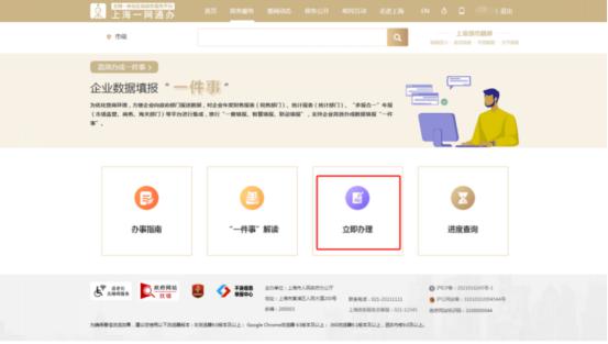1. 开启上海“一网通办”站点,在搜索框中输入“公司数据填写一件事”,或点击“特色栏目” - "高效地做好一件事" -【企业数据填报】。