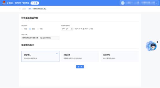 温馨提示:当地“规上企业”请按年度统计报表进行。->年度财务报表 ->按照“多报合一”的顺序填写报告。