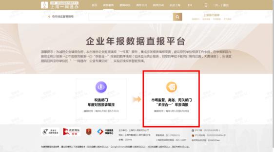 6. 点击【市场监管、业务、海关部门“多报合一”年报填报】