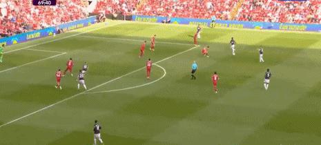 第 71 几分钟后,厄德高射,阿诺德拖在后面,导致梅里诺没有越位。门将扑救出手,梅里诺迅速跟上,头球补射空门成功。但是在梅里诺补射的过程中,阿诺德只是看了看,没有防守。2-2,阿森纳扳平了比分。