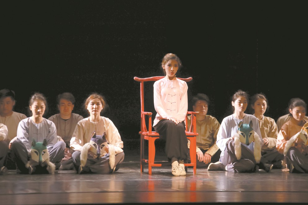 在戏剧《主角》中,年轻演员刘李优优(左二)扮演秦腔名家记忆秦娥。 (主办方提供图片)